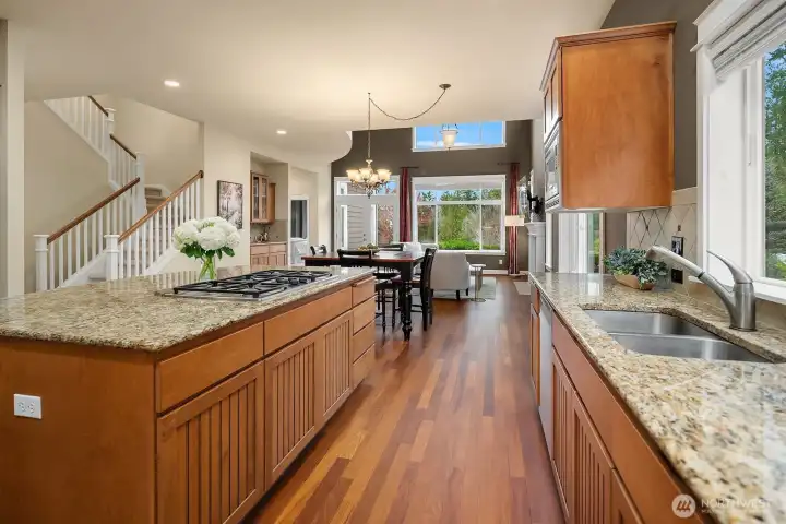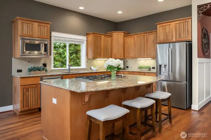 Set on one of the most exceptional lots in Issaquah Highlands, overlooking a tranquil pond with breathtaking views, this impeccably maintained home offers a rare blend of privacy, light, and livability. Vaulted ceilings and walls of windows flood the home with natural light. The main-floor primary suite is a sanctuary with incredible views of the backyard and features a spacious walk-in closet and spa bath. Also on the main level are a private office and an open-concept great room where the kitchen, dining area, and expansive family room come together seamlessly, ideal for relaxed living and entertaining. A versatile bonus space on the main floor offers flexibility for a home gym, hobby room, or abundant storage. Upstairs, a second primary suite with ensuite bath provides an ideal setup for guests or multi-generational living, along with an additional bedroom, full bath, open bonus loft, and convenient laundry room. Step outside to a one-of-a-kind backyard retreat, set on one of the largest lots in the Highlands. Thoughtfully landscaped for privacy and beauty, this serene outdoor space features a hot tub, built-in firepit, and lush plantings, all perfectly positioned to take in the peaceful pond setting, your own private escape. Exceptional storage is found throughout the home, including a discreet third garage bay, ideal for bikes, outdoor gear, tools, and seasonal items. Enjoy nearby parks and trails, top-rated Issaquah schools, and quick access to I-90 for an easy commute.