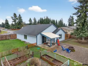 Charming single-level home offering 1,628 sq ft on a beautifully landscaped quarter-acre in a peaceful Grand Mound setting with no HOA. A well-designed split bedroom floor plan provides both a bright living room with vaulted ceilings and a separate great room, perfect for flexible living or working from home. The kitchen features generous cabinetry and updated appliances, flowing into the dining and living areas with easy access to the backyard. The spacious primary suite includes a private bath and walk-in closet, plus two additional bedrooms and a full bath. Enjoy a fully fenced yard with garden space, room for chickens, RV or boat parking, a double garage, and quick access to I-5 for an easy commute to Centralia, Olympia or JBLM.