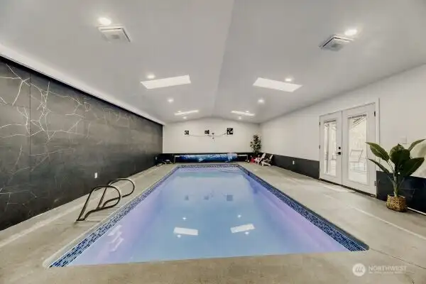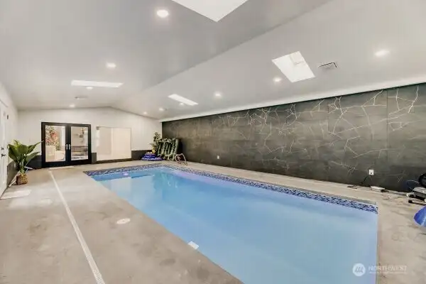 Experience exceptional living in this beautiful two-story Lynwood home, featuring a massive bonus area and an indoor pool for year-round enjoyment. This turnkey residence offers an open floor plan with a stunning kitchen equipped with quartz countertops, sleek white cabinetry, and stainless steel appliances. The main level includes a luxurious primary suite with an attached 3/4 bathroom, along with two spacious bedrooms and a full bath. The finished lower level boasts two large versatile rooms, a wet bar ideal for entertaining, and another full bathroom. The impressive enclosed pool room, approximately 800 square feet, provides a private oasis for relaxation and recreation. Additional highlights include a two-car garage, generous parking space for RV or boat, and a modern interior featuring new flooring, fresh paint, updated doors, trim, lighting, and refinished hardwood floors. This secluded home combines style, comfort, and functionality in a perfect setting.