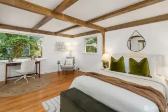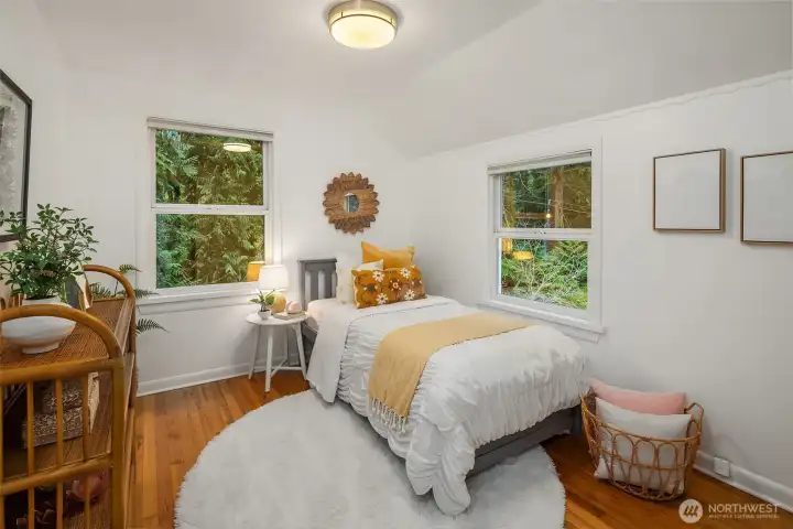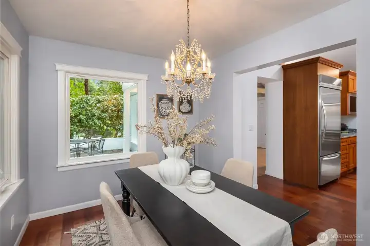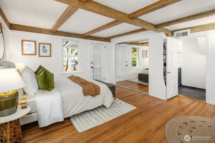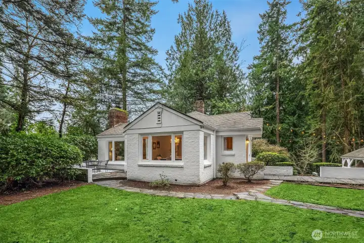 Absolutely singular 1941 cottage in the woods, crafted with an unsurpassed eye for detail. Hand carved and painted beams support soaring wood ceilings. Scalloped interior trim adds a bit of whimsy while a stone fireplace grounds the living space. Modernized in just the right ways: updated kitchen has Miele dishwasher, Wolf gas range, counter depth KitchenAid refrigerator, and granite countertops. Huge primary bedroom updated in 2011 with spacious walk-in shower. On the tamed portion of this 1+ acre lot, garden walls create distinct outdoor spaces, including a courtyard dining patio, a hot tub pad, firepit, and a covered grilling shelter with a built-in fireplace. Cozy kitchenette studio under detached 380SF garage w/ full bathroom; perfect for guests, work-from-home, or future income. Easy jaunt to Lake Forest Park Town Center with Third Place Books, Honey Bear Bakery, Ace Hardware, King County Library, Albertsons, Starbucks, Mod Pizza and SO MUCH MORE. Ride the Burke Gilman Trail to Seattle or Kirkland. Beloved, highly regarded Shoreline Schools. And the icing on the cakeā¦.this parcel is deeded for membership in Lake Forest Park Civic Club with sandy beach, boat ramp, and clubhouse.