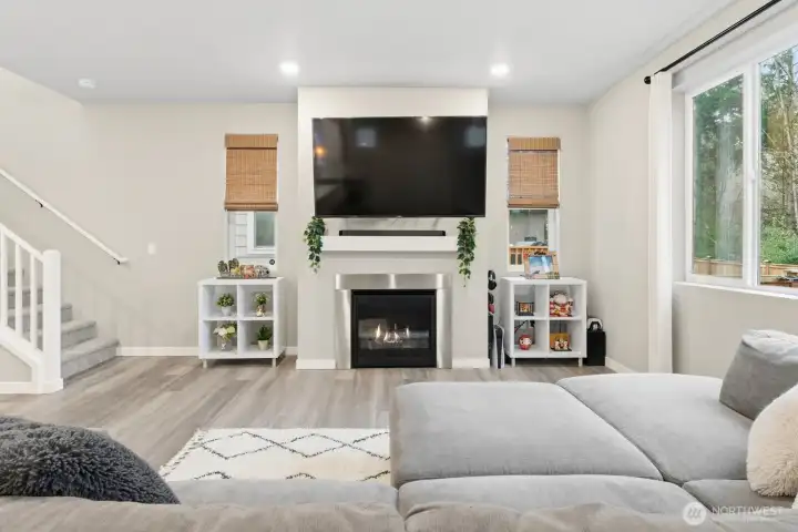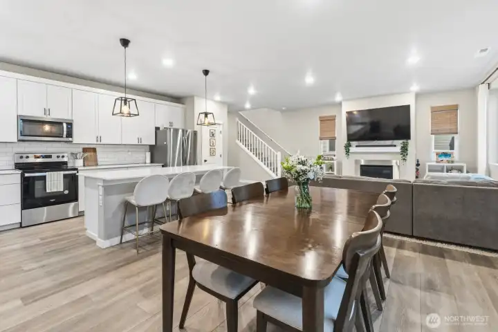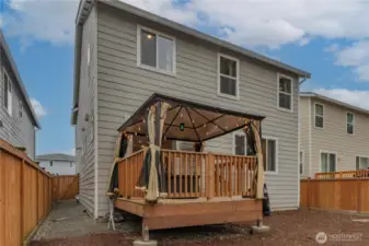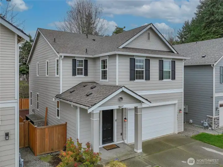 Completed in 2021, this 3-bedroom, 2.5-bath home blends modern design with everyday functionality. The open-concept layout features 9-foot ceilings on the main level, a cozy gas fireplace, and a two-car garage. The kitchen is the heart of the home with a large island, quartz countertops, and subway tile backsplash, perfect for entertaining. Upstairs, the spacious primary suite offers a 5-piece bath with water closet and walk-in closet, while the loft provides flexible space for your home. Enjoy a fully fenced backyard with no homes behind, offering rare privacy, plus a deck with gazebo ideal for relaxing or hosting. Conveniently located just minutes drive to JBLM with easy I-5 access, Costco, Home Depot, Safeway, WinCo, Walmart, downtown Olympia, Thurston County’s largest off-leash dog park, and within walking distance to the Regional Athletic Complex and community playground. Come and tour this home!