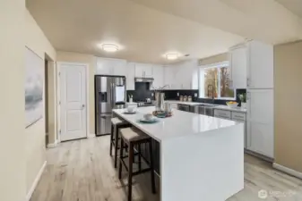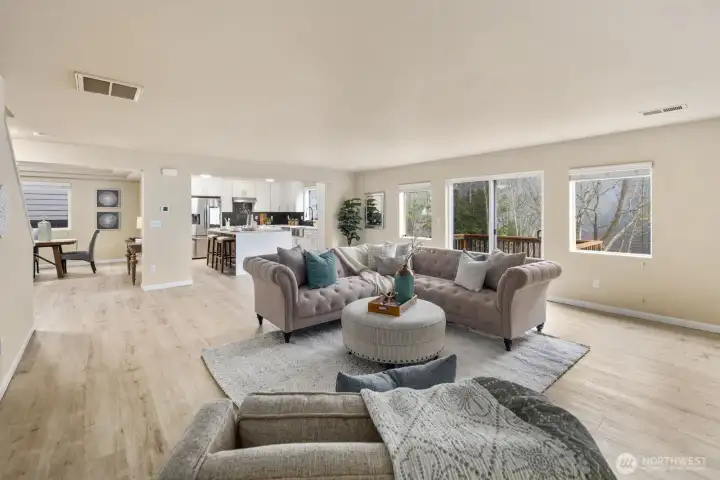 Lovely move-in ready home nestled in a quiet cul-de-sac! This spacious 5-bedroom, 2.5-bath residence offers 3,361 sq. ft. of comfortable living space featuring an office on the main floor, a large bonus room upstairs, and an expansive mezzanine hallway, generous primary en-suite. The open-concept kitchen and living areas flow seamlessly to the backyard, which overlooks a greenery - perfect for relaxing or entertaining. Enjoy modern comforts such as air conditioning, freshly repainted interiors, and stainless steel appliances. A generous 3-car garage provides ample parking and storage. Conveniently located near 272nd St. Light Rail for easy access to Seattle and Sea-Tac Airport, with close proximity to I-5, public parks, and local amenities.