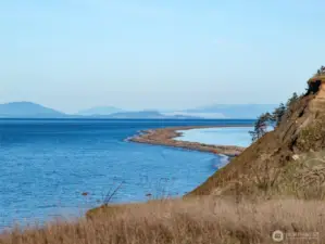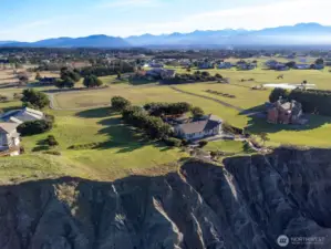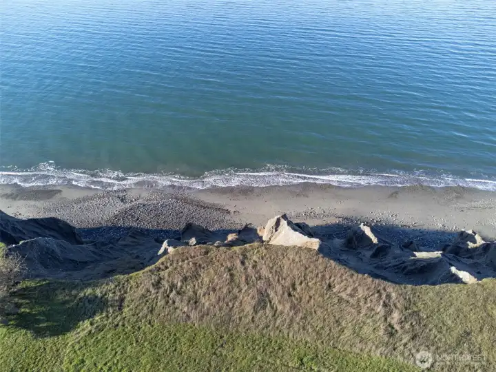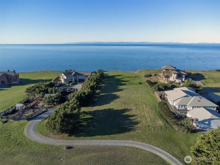 Experience extraordinary coastal living on this 2.5-acre high-bank waterfront parcel in Blue Ribbon Farms, an enclave of custom homes with access to a private grass airstrip. Set within Sequim’s renowned rain shadow, the property enjoys sunnier, drier weather and sweeping views of the Strait of Juan de Fuca, Mt. Baker, the San Juan Islands, Vancouver Island, and the Olympic Mountains. Eagles, hawks, seabirds, deer, and black-tailed rabbits are regular visitors, adding to the natural beauty and quiet rhythm of the setting. Outdoor recreation is exceptional with the Dungeness Recreation Area and Dungeness National Wildlife Refuge just moments away—offering miles of bluff-top trails, protected habitat, & the iconic walk along the Dungeness Spit to the lighthouse, a favorite local experience treasured by residents and visitors alike. The community’s private grass airstrip provides a rare amenity for aviation enthusiasts, blending naturally into the landscape. Much of the groundwork for building is complete: a preliminary stormwater plan, 2019 Geotech with 2024 county review confirming a 150' bluff setback, soils & site registration, and a pending 3-bedroom septic permit valid through March 2027. The property is served by PUD power and the Cascadia community water system, and CCRs help protect the character of this desirable waterfront community. A rare opportunity to build where sunshine, scenery, & coastal quiet come together in a truly exceptional setting.