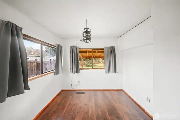 Looking to make a little sweat equity?? 1358 +/- sqf 3 bedroom, 1.5 bathroom home on a level .85+/- fenced parcel in East Olympia. Home features updated kitchen & bathrooms, wood stove, new 30yr comp roof, fenced backyard, detached garage, garden space, fruit trees, and plenty of space to park your RV. Great East Olympia location close to shopping and Tumwater Schools.