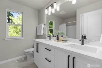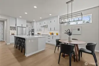 Welcome to Harbor Grove in Mukilteo. Stylish and functional, this open-concept kitchen features sleek quartz countertops, stainless steel appliances, and modern white cabinetry with ample storage. The center island with bar seating flows seamlessly into the dining space, highlighted by wide sliding glass doors that fill the room with natural light and create a perfect indoor-outdoor connection. Northwest Builder, Sea Pac Homes, builds beautiful neighborhoods! This lovely home features nearly 3,000 square feet and sits on a spacious quarter-acre corner lot. The Camilla floor plan spacious main floor that opens to deck, rec room, large bedrooms + abundant storage. The upstairs features the primary suite with four additional bedrooms and a laundry room. The kitchen offers stainless steel appliances and a large walk-in pantry. Harbor Grove combines suburban tranquility with convenient access to urban amenities. Big Gulch trailhead and Japanese Gulch Neighborhood Trailhead minutes away. Excellent Schools. EV charger ready. No monthly HOA dues to contend with. Live life at your pace in peace and quiet on a residential street with ease and proximty to all your needs.