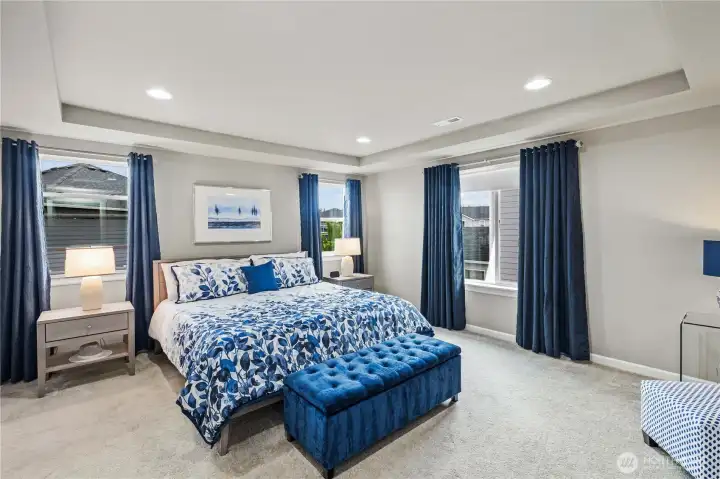 Welcome to the Richmond American Alexa plan, where timeless design meets modern luxury. From the charming covered front porch that warmly greets you to the inviting back patio with a cozy gas fireplace, every corner of this home is designed for comfort and elegance. The addition of soundproofing throughout ensures a peaceful retreat throughout the home. The main floor is a perfect blend of style and functionality with spacious living room, a versatile den, and a gourmet kitchen with a large island, walk-in pantry, and a sunlit dining room. Upstairs, convenience and luxury take center stage. A centrally located laundry room complements four generously sized bedrooms, including a refined primary suite with a spa-like en-suite bathroom and an oversized walk-in closet. A versatile loft offers endless possibilities, easily converting into a fifth bedroom, media room, or bonus space. Nestled in the Maple Hills community of Covington, this home seamlessly blends elegance and comfort. Additional highlights include a spacious 3-car garage, air conditioning for year-round comfort, and the added assurance of a pre-inspection for your peace of mind.