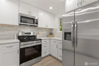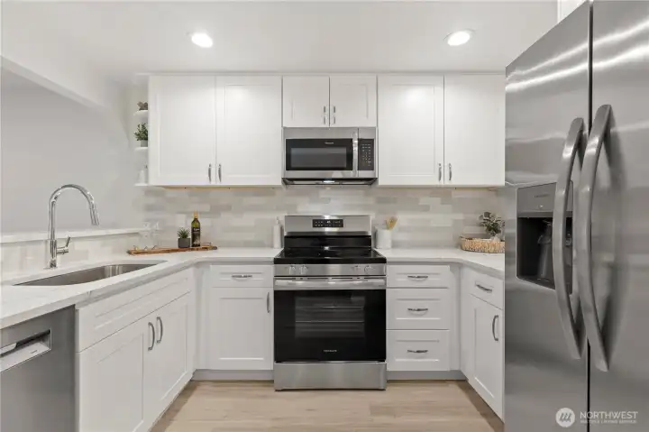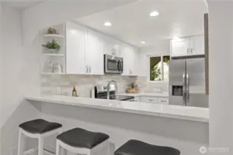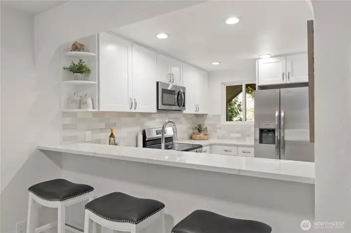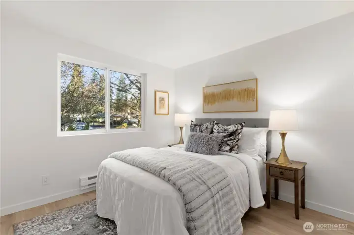 Beautifully updated top-floor end unit in the desirable Spring District's Tenth Place Condos blends modern style with everyday comfort. Located steps away from Meta's Bellevue campus, dining, groceries, and light rail access. Enjoy easy commutes to downtown Bellevue, Microsoft, Redmond, and Seattle. Updates include fresh interior paint, luxury vinyl plank flooring, soft closing cabinets with quartz counters, stainless steel appliances, and lighting. Enjoy your private balcony looking into a greenbelt. With no rental cap, this is an excellent investment near the Spring District. HOA dues cover water, sewer, garbage, and access to the community pool and sport court. Zoned for award-winning Bellevue School District.