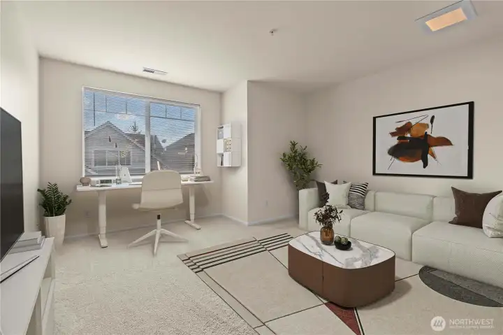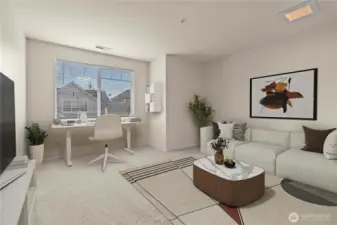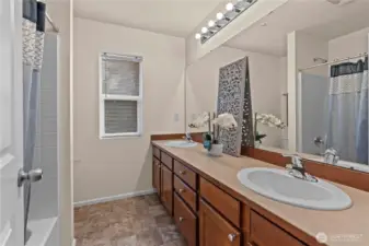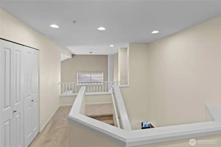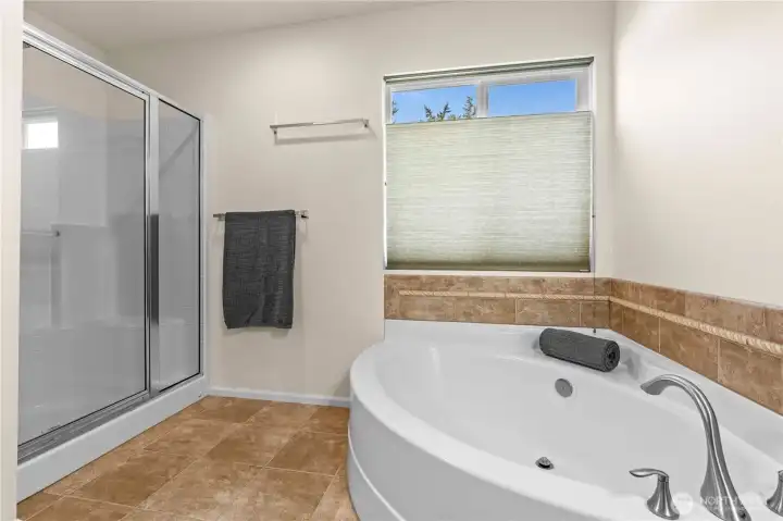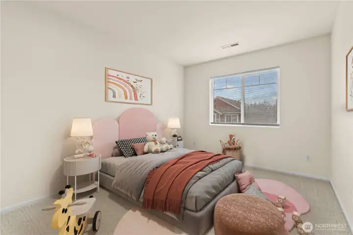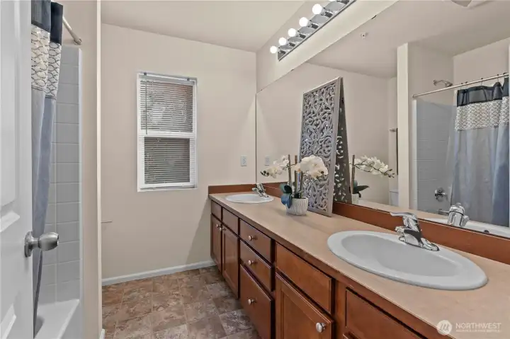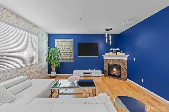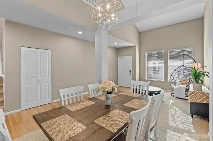Welcome to this stunning home at The Crossings, located next to a greenbelt. Step inside to find beautiful new paint and fresh new carpet, complementing gorgeous hardwood floors and vaulted ceilings. The kitchen has a spacious island, pantry & granite countertops, enhanced by modern stainless steel appliances. The master bedroom features a large walk-in closet & a lavish 5-piece bath with a soothing soaking tub. Three additional well-sized bedrooms offer flexibility, and a recently remodeled downstairs bathroom adds modern elegance. Enjoy a 2-car garage with electrical outlet for EV charging, new water heater and a fully fenced, low-maintenance yard. The community offers playground, guest parking, and pet waste stations. Conveniently located near I-5, 405, Boeing, Park and Ride, athletic club, shopping, dining and amenities, this home perfectly blends comfort & convenience.