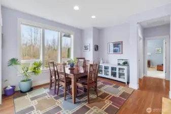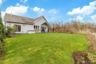 Nestled in a truly serene and storybook setting, 5434 Blue Sky Way is an exceptional rambler that effortlessly blends luxury, comfort, and breathtaking natural beauty. Backing to expansive open space, this home offers a rare sense of privacy and tranquility, with sweeping territorial views showcased through huge exterior windows in every room—bringing the outdoors in and flooding the home with natural light. Step inside to an impressive open-concept layout designed for both everyday living and unforgettable entertaining. Soaring vaulted ceilings enhance the sense of space and grandeur, while seamless flow between living, dining, and kitchen areas creates a warm yet sophisticated ambiance. Every detail feels intentional, airy, and inviting. The generous main-floor primary suite is a true retreat, offering peaceful views and ample space to unwind. The luxurious five-piece bath is spa-inspired and indulgent, complete with a deep soaking tub—perfect for relaxing at the end of the day. Outside, the tranquil backdrop of open space provides an ever-changing canvas of natural beauty—ideal for morning coffee, evening sunsets, or quiet moments of reflection. This home is the epitome of peaceful Pacific Northwest living, offering a rare combination of elegance, openness, and connection to nature. An extraordinary rambler in an unbeatable setting—this is Ferndale living at its finest. MUST SEE!!
