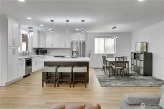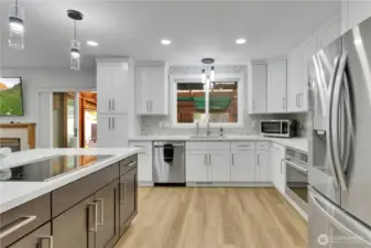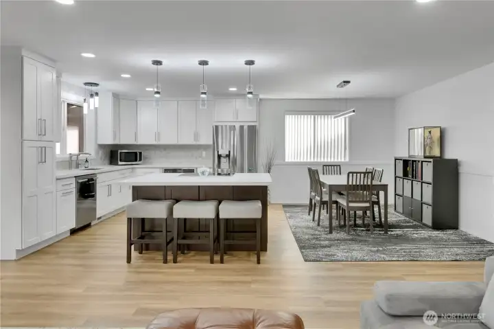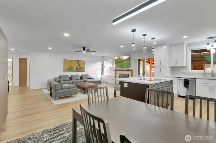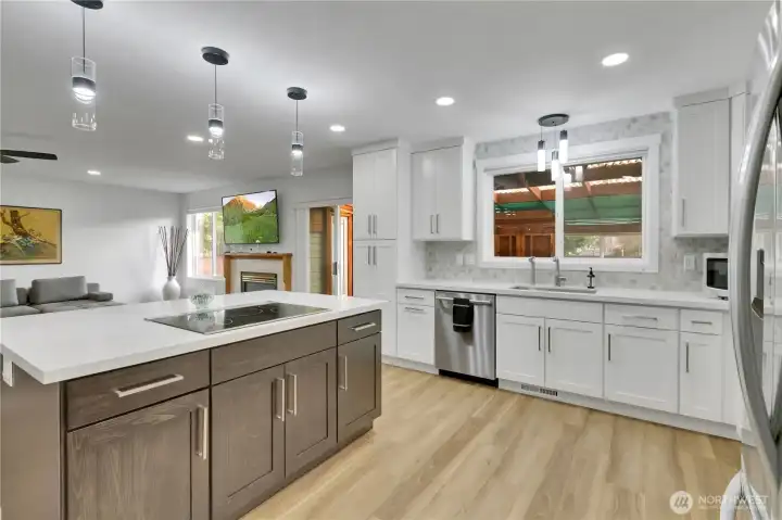 Beautifully updated 3-bed, 2-bath Maple Valley rambler on a 7,200 SF lot. The fully remodeled kitchen features modern cabinetry, quartz countertops, stainless steel appliances, water filtration system and a spacious island—perfect for everyday living and entertaining. The open layout flows effortlessly into the living space and out to a covered patio just off the kitchen, ideal for year-round indoor-outdoor living.Major upgrades include new kitchen & appliances, new furnace & Electric panel, EV charging station, and stylish modern finishes throughout, new flooring, a separate finished, heated backyard studio with full electrical provides incredible flexibility for a home office, gym, or creative space. Well maintained yard, fully fenced backyard & garden space, wired for generator and a prime Maple Valley location close to schools, parks, shopping, and commuter routes.Turnkey, functional, and thoughtfully upgraded—this home checks every box!