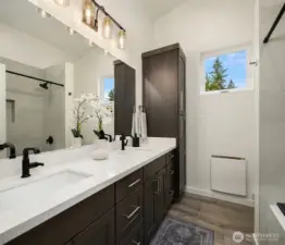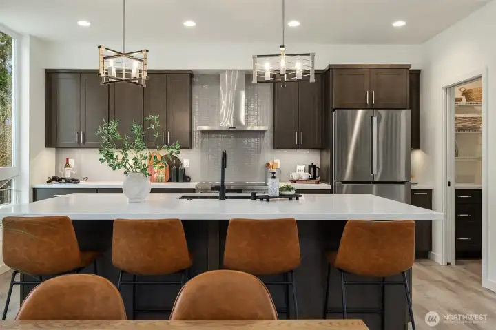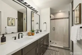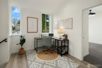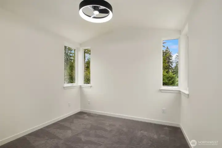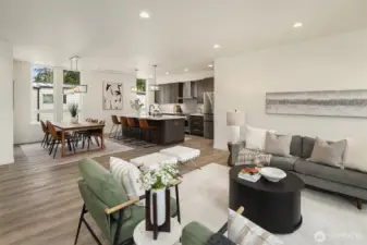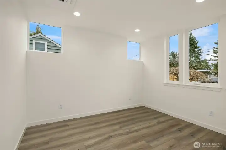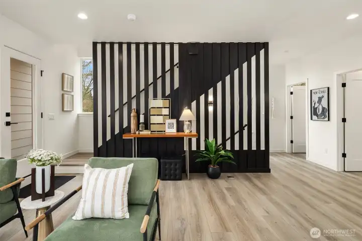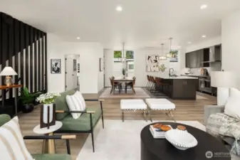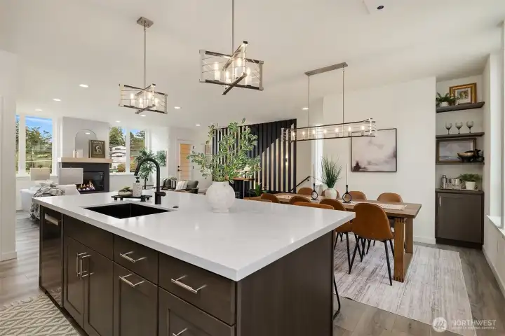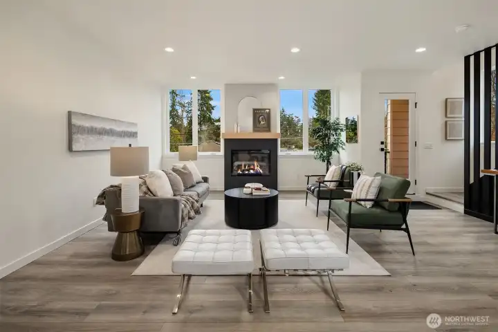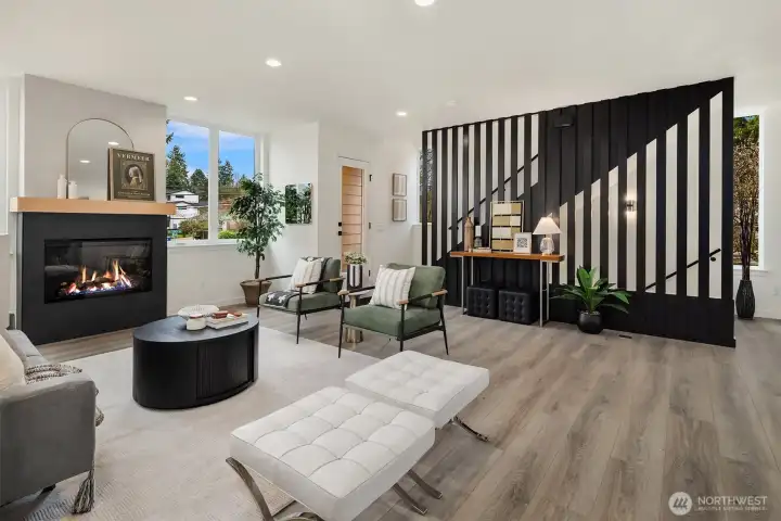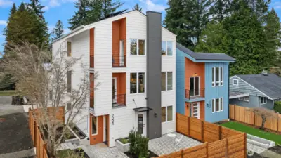 Tucked between Lake Washington and Green Lake, Victory Heights offers the ideal blend of peaceful residential living and convenient access to Seattle’s best amenities. This three-home enclave is built by Homes West Inc., bringing over 35 years of hands-on homebuilding experience and a well-earned reputation for exceptional craftsmanship and meticulous attention to detail—from thoughtful site planning to refined final finishes. In collaboration with JW Architects, each home is intentionally designed to balance modern style, everyday functionality, and lasting comfort. Spanning 2,671 square feet of living space, including a 423-square-foot two-car garage, this five-bedroom residence delivers outstanding value in both size and location. The main level features a flexible work-from-home or guest suite complete with a cozy fireplace, a full bathroom, and direct access to a private fenced yard. The second level opens to an expansive living and dining area, complemented by an additional bedroom and powder room. Step onto the first deck to enjoy sweeping lake views—an ideal setting for entertaining or unwinding at the end of the day. The top floor is thoughtfully arranged with two additional bedrooms, a full bathroom, and a serene primary suite featuring lake views and its own fireplace, creating a private retreat above it all.