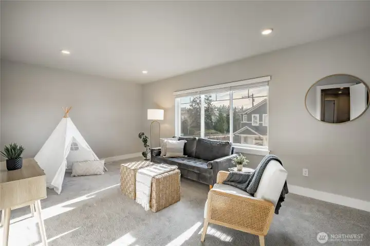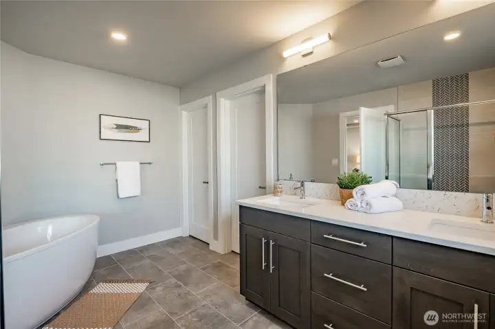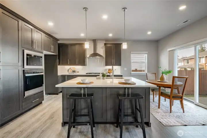 This impeccably maintained residence, built just two years ago, is in like-new condition and reflects exceptional pride in ownership. Located in the desirable Dalston Grove community, this 4-bedroom, 2.5-bathroom home features a bonus room and attached 2-car garage. The open-concept floor plan creates a spacious and welcoming environment, highlighted by a kitchen with quartz countertops that seamlessly connects to the dining and living areas. A sliding door provides direct access to the private, fully fenced backyard. The primary suite includes a luxurious 5-piece ensuite bathroom with a walk-in shower, freestanding soaking tub, and generous walk-in closet. Three additional bedrooms complement the home, along with a versatile bonus room that can serve as a fifth bedroom, media room, home office, fitness area, or playroom. A conveniently located upstairs laundry room completes the second floor. The home is equipped with CENTRAL AIR CONDITIONING & heat pump back up for year-round comfort. Its prime location offers proximity to the newly revitalized downtown Bothell, Mill Creek Town Center, diverse shopping and dining options, community park + 19 public parks, and convenient access to I-405 and I-5. The property is served by highly rated schools: Tambark Creek Elementary (10/10), Gateway Middle School (8/10), and Henry M. Jackson High School (9/10). 10-year transferrable Builder Home Warranty included.