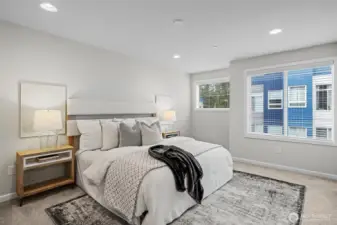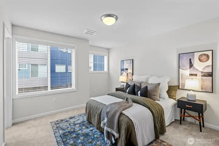 Stunning 2-bedroom en-suite townhouse ideally situated in the highly sought-after Kirkland/Juanita community. Thoughtfully designed with modern finishes and an open-concept layout, this home is perfect for both entertaining & everyday living. The expansive chef’s kitchen features stainless steel appliances, a gas range, pull-out shelving, abundant soft-close cabinetry, and generous quartz counter space. Bosch refrigerator and Café Stove/Oven, Microwave and Dishwasher. Enjoy seamless indoor-outdoor living on the rooftop deck with water, electrical and gas available —ideal for relaxing, entertaining or dining al fresco. A spacious 2-car garage with EV Charger, heated storage closet, indoor water spigot, plus an extra storage space. High performing Daikin mini-splits in main living and primary bedroom for year-round comfort. Located near Lake Washington, Juanita Beach Park, dining, and within the top-rated Northshore School District, this home offers the perfect blend of comfort & style. No Rental Cap makes this an excellent investment opportunity! Full-sized LG washer and dryer with pedestals drawers included. 3 Pets Max (any combo of cats/dogs). Move-in Ready!