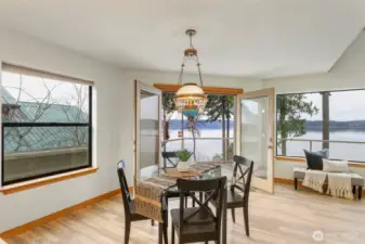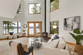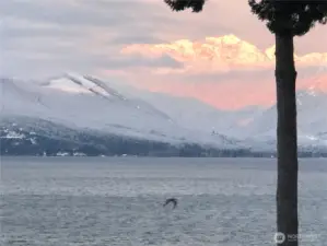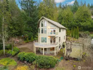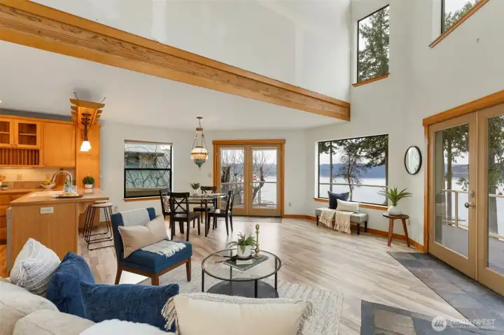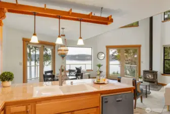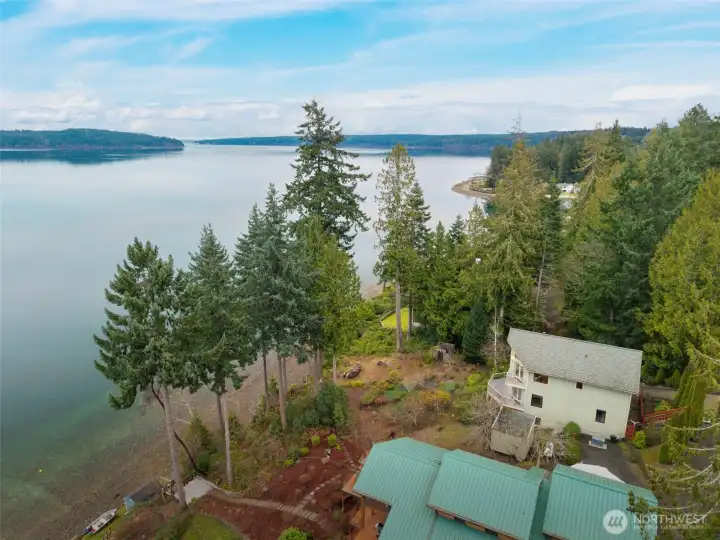 Beautiful waterfront living in a highly desirable area, just shy of a half-acre. This 2-bedroom (with extra room for potential 3rd bedroom or office) home offers stunning mountain views, direct beach access, and an open floor plan designed for effortless living and entertaining. The primary suite is conveniently located on the main level, while the lower level features a shop perfect for hobbies, storage, or projects. Enjoy the outdoors year-round from two expansive decks, taking in the peaceful waterfront setting. A rare opportunity to own a property that blends space, views, and lifestyle.