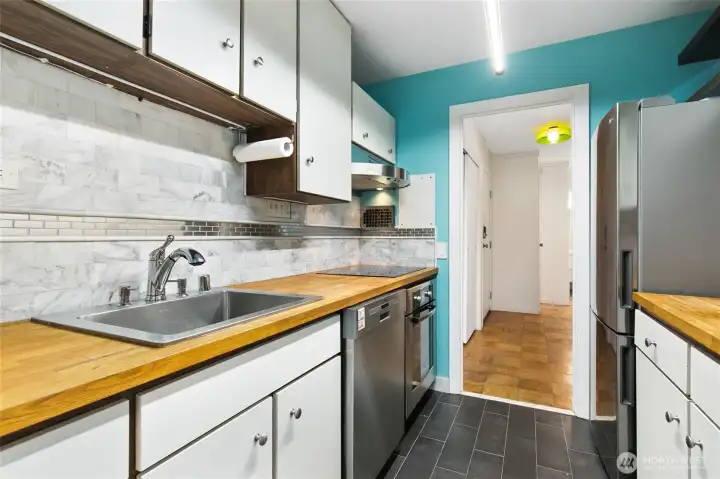 Fantastic value in a classic Mid-Century Modern, steel and concrete mid-rise in Seattle's historic First Hill neighborhood. This light filled, southeast corner unit is incredibly spacious and flooded with natural light with walls of windows, oak parquet floors, updated kitchen and bathrooms, and abundant in-unit storage. Common amenities include beautiful heated swimming pool, bike storage, common EV Charger, and car washing station. Close to grocery stores, restaurants, parks, museums, hospitals, public transit, downtown, and SLU. Secure garage parking, plus storage unit. Radiant heat, hot water, Google Fiber internet & on-site manager included in HOA dues. No rental cap!