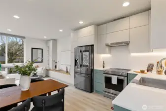 This end-unit Leschi townhome is truly better-than-new, with high-impact upgrades already done. Sellers added gorgeous custom cabinetry in kitchen and living room—clean, architectural, functional—plus custom shades and closets. Walls of windows on 3 sides flood the home with natural light, keeping interiors bright even on the grayest days. Efficient layout is versatile and livable. Roof deck views are sensational: mountains, skyline, treetops and sunsets. What an incredible setting for lingering outside on a long Seattle evening! Moments from the lake, parks, food, drinks + services, w/easy access to downtown and the Eastside. Don't miss this special, design-forward home within a friendly complex in one of Seattle’s favorite neighborhoods.