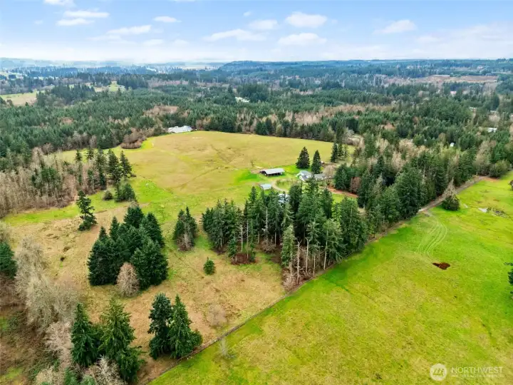 Country Living Close to Town! This is a rare opportunity to own almost 40 affordable acres, 20 minutes from Olympia! This expansive property offers tons of space, functionality, and potential multi-gen living, all with easy access to I-5, minutes from Tenino and close to Olympia. The Main Residence: Set well back from the road, the generously proportioned home offers comfortable living with beautiful rural views and great privacy. Generous bedrooms, multiple bathrooms and tons of storage support flexible living possibilities. Barn, Outbuildings & Workspaces: Multiple outbuildings and a great barn provide covered workspace, equipment storage, and flexible options for horses, livestock, project zones, expanded hobby farm operations or business ventures, or potentially other living spaces. (Verify proposed uses with Thurston County.) Barn with 6 stalls, huge pole barn, garden shed, metal shop building with partially finished space, and additional workshop space offer nearly endless options! Apartment Above Garage: Unlock additional value with the finished space above the garage. This space offers a private living area ideal for rental income, extended living, guest quarters, or a home office. Includes a full bath and kitchenette, plus 2 large finished rooms and separate exterior entrance. Land: The 38 +/- acres are largely flat and usable, and have been used for cattle, horses and haying for many decades.