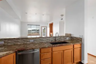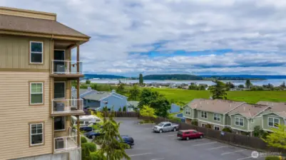 Welcome to Scenic View, your new Whidbey Island home! Enjoy the wonderful view from this top floor unit in one of Oak Harbors premier condominium complexes. Elevator access transports you from your covered parking spot to your front door. The thoughtful floor plan includes a roomy office space with french doors, large open view kitchen, main living area, guest bedroom, full guest bath, huge laundry room, and a large primary suite with updated 3/4 bath. The kitchen is perfect for entertaining with lots of cabinet space, stainless appliances, and beautiful granite counters. Plenty of room for bar stools here! Lounge in style in the living room with a view window and door leading out to the covered balcony. Check out those views! Perfect for morning coffee, mid-day snacks or evening cocktails. Need extra storage? A storage room on the balcony plus a private storage space in the garage has you covered. Take a stroll on the nearby Windjammer Beach Park trail and head to town for shopping, dining and of course all the beach activities. Move in ready and waiting for you to make it your own. Relax and enjoy!