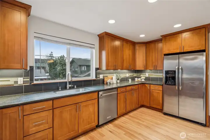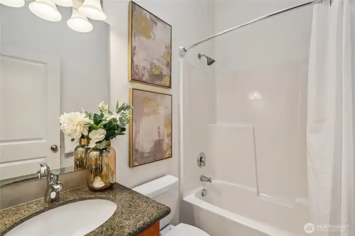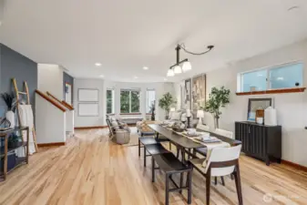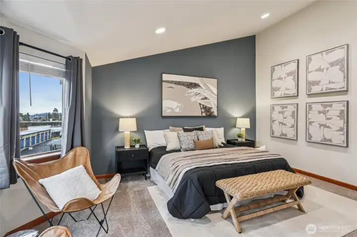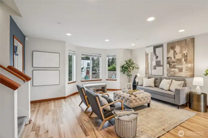 Tucked away yet surprisingly spacious, this oversized townhome lives large with thoughtful design and features throughout. Open-concept great room, with newly finished hardwoods, and a generous kitchen with stainless steel appliances and a gas cooktop - perfect for everyday living and entertaining. All bedrooms are conveniently located on the same level, including a serene primary suite with vaulted ceilings, a walk-in closet, and a luxurious five-piece en suite. A rare two-car garage adds everyday ease, and prime location offers a convenient commute with nearby transit, LFP Towne Centre, and the amenities of Lake City Way. No HOA and in Shoreline Schools. Mortgage savings may be available for buyers of this listing.