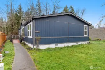 Updated 3 bed, 2 bath manufactured home in Puyallup featuring brand new windows and move-in ready condition. Bright open kitchen with wood cabinets, large pantry, and newer range/oven. Newer vinyl plank flooring, cathedral ceilings, and spacious living and dining areas. Large primary suite with walk-in closet and a big bathroom. Two additional bedrooms, updated second bath, separate laundry with storage, backyard shed, and two-car covered carport. Located in a well-maintained, all-ages community near Meridian Ave. Access to main Hwy arteries.