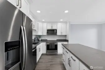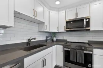 Wake up to breathtaking Puget Sound views from this fully renovated 2-bedroom, 1¾-bath condo in the heart of the Des Moines Waterfront. Offering 1,170 sq ft of beautifully updated living space, this home blends modern design with timeless coastal charm. The stunning new kitchen features quartz countertops, custom cabinetry, stainless steel appliances, and thoughtful finishes perfect for everyday living and entertaining. Both bathrooms have been completely remodeled with spa-inspired details, creating a relaxing retreat at home. Elevated finishes include crown molding, substantial 6-inch millwork, and solid core doors throughout, adding a refined, high-end luxury feel. Enjoy sweeping water views stretching toward Ruston and the Southworth Ferry, with unforgettable sunsets over the Olympic Mountains. Catch sailboat races from the comfort of your living room. Located just steps from the new Des Moines Waterfront, with easy access to the Normandy Park shopping district and grocery stores, this home offers front-row access to waterfront living. Stroll to the marina, farmers market, restaurants, shops, beaches, and miles of scenic walking paths. Secure garage parking and a rare 9x16 storage area provide space for bikes, paddleboards, and gear—perfect for an active waterfront lifestyle. One-of-a-kind, turnkey, and unmatched, this condo offers a lifestyle and view rarely available—an opportunity not to be missed for those seeking luxury on the Sound.