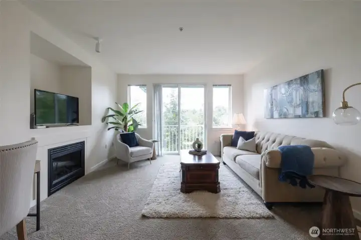 Last opportunity to own in the highly sought-after resort-style community of ParTerra at Newcastle - one of the area's most desirable addresses. Top-floor corner end unit offers a massive 947 SF one-bedroom unit with territorial, city & pond views from your private balcony & primary bedroom. Light-filled living room with a fireplace for cozy evenings and relaxation. Over-sized primary suite with 5-piece en-suite, soaking tub, step-in-shower, dual vanities & his-and-hers walk-in closets. One-car garage (#A) and one additional gated basement garage parking (#1). Rent out the unit and/or rent out both parking spaces-an attractive opportunity. Walkable to Lake Boren park, trails, dog park, tennis & sports court & lake promenade. Award-winning Issaquah Schools District. A rare blend of comfort, privacy, and easy commute. Welcome home.