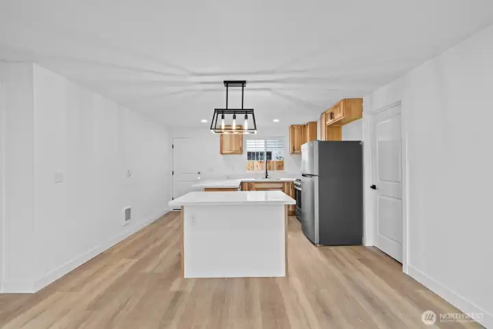 Welcome to this beautifully updated 3-bedroom, 2-bath home offering over 1,300+ sq ft of modern living space. Step inside and fall in love with the open floor plan enhanced by designer finishes throughout. The stunning kitchen features new stainless-steel appliances, updated cabinetry, quartz countertops, and a large center island—perfect for entertaining family and friends. The spacious primary suite includes a private bathroom with a custom tiled shower surround and a new vanity topped with quartz countertops. Interior updates include new doors, millwork, fixtures, lighting, and flooring throughout. Outside, enjoy peace of mind with a new roof, fresh exterior paint, new siding, and fencing. The oversized back patio offers the ideal space for outdoor dining, relaxing, or hosting gatherings. Additional features include a 1-car garage and a convenient location near Mountain View Elementary, shopping, and freeway access. This move-in-ready home blends style, comfort, and convenience—don’t miss your opportunity to make it yours!