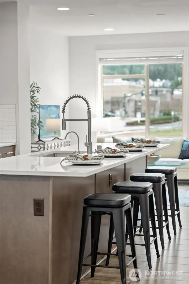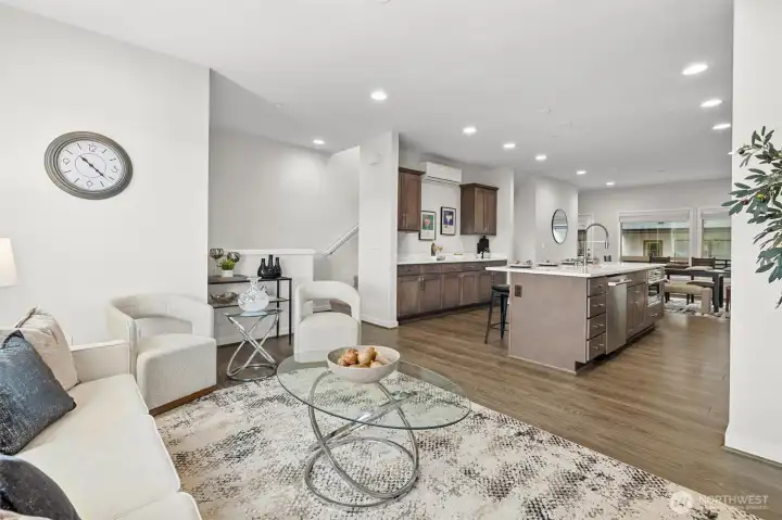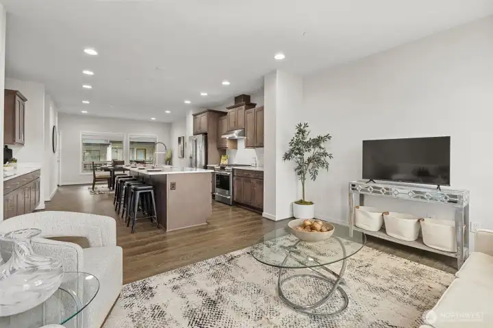 In Issaquah Highlands, life feels connected in the best way. With quick access to I-90 & everyday conveniences, getting where you need to go feels simple. Coffee, dining, parks, schools & trails are all nearby. This home reflects that lifestyle with spaces that feel intentional, bright & designed for how people truly live day to day. The main level is a true great room concept, with defined living & dining areas that support both entertaining & everyday moments. The kitchen anchors the space, creating a natural gathering point, while extended hardwood floors keep the look clean & modern. A covered main-level deck extends living outdoors, ideal for morning coffee, casual meals, or winding down in the evening. The lower level offers flexible space that works well as an office or 4th bedroom with its own 3/4 bath, providing separation & versatility without feeling disconnected from the rest of the home. The third level is dedicated to rest & retreat, featuring a true primary suite with a spa-like bath, plus two additional guest bedrooms & a full guest bath, offering comfort and privacy. The top level is where this home truly stands out. A large bonus room with its own bathroom opens directly to the rooftop deck, creating an elevated space for entertaining, relaxing or simply enjoying the setting. Air conditioning; Issaquah Highlands fiber network; East-facing; Practical parking with a 2 car garage & driveway. Location, layout & lifestyle that simply work. Wow!