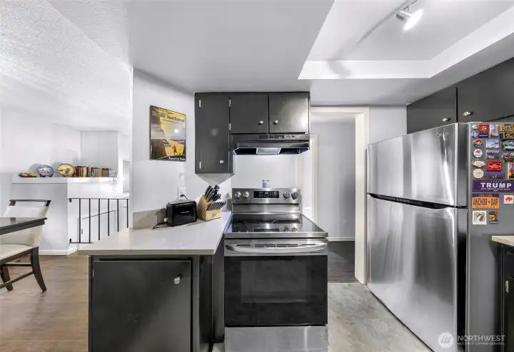 Why rent when you can own? Discover this beautifully updated 3-bedroom, 1.5-bath condo in the heart of Mount Vernon, offering an affordable path to homeownership or a smart investment opportunity. This move-in-ready home has been thoughtfully refreshed with modern upgrades throughout, including fresh two-coat interior paint on ceilings, walls, and trim, all-new flooring, and updated lighting fixtures. The kitchen shines with new appliances, countertops, refurbished cabinets, and a stylish range hood, while the bathrooms feature a new vanity and fixtures for a clean, contemporary feel. Enjoy peace of mind with a new electrical panel, switches, plugs, and a recently installed water heater. The living room boasts a custom wood slab epoxy fireplace mantel, adding a unique touch of warmth and character. Step outside to your large covered deck, perfect for relaxing or entertaining year-round, rain or shine. This condo offers a functional layout and an unbeatable location close to downtown Mount Vernon, schools, the hospital, shopping, and easy freeway access. Low monthly dues include water, sewer, and garbage, helping keep monthly costs manageable. All appliances stay, including washer and dryer, so you can settle in with ease.