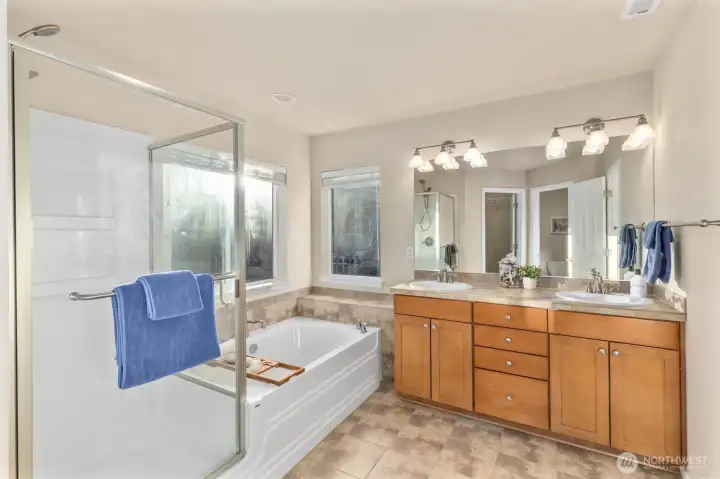 Desirable, move-in ready home in the sought-after Mill Creek neighborhood! This well-maintained residence features granite countertops, newer stainless steel appliances, gas cooktop, and a walk-in pantry. The main floor boasts open layout. It’s ideal for everyday living and entertaining, with the family room located on the upper level for added privacy. The spacious primary suite offers a walk-in closet and a luxurious 5-piece bath with a large soaking tub. Enjoy peace of mind with a new furnace and A/C installed in 2024 and a roof replaced 8/25. The tranquil, fully fenced backyard includes a patio plus mature low-maintenance landscaping perfect for relaxing or entertaining. Community amenities include a sport court, and the location can’t be beat with nearby shopping, restaurants, golf course, transportation, and easy freeway access