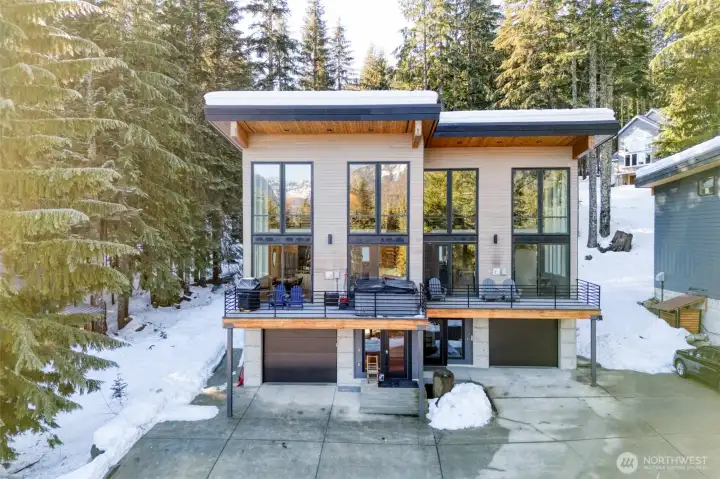 This 2021 luxury mountain modern home on Snoqualmie Pass features breathtaking mountain views including Rampart Ridge and Chikamin Peak. Thoughtfully designed for mountain living, this home features a heated driveway w/efficient radiant snowmelt system, entry and mudroom with heated floors, set-up for gear storage and quick access to the outdoors. Radiant heated floors on all 3 levels, 20+’ floor-to-ceiling windows with panoramic views from the expansive open-concept living areas and high-end finishes (granite counters, custom cabinets, large gas cooktop & stainless-steel appliances) creates a warm & inviting ambiance for entertaining. This 4 bedroom + flex space, 2.75 bath retreat offers versatility – primary residence, weekend sanctuary, or turnkey set-up for home exchange or short-term rental, with locked cabinets and garage. Other exceptional features include primary en suite, and media/family room with beautiful built-ins offering additional storage. Relax by the fire or soak in the hot tub after a day on the slopes or sledding down your private hill in your backyard. Beautiful trees surround this all-season getaway. Best of all, furnishings can be included, so everything is set for you to immediately enjoy!
