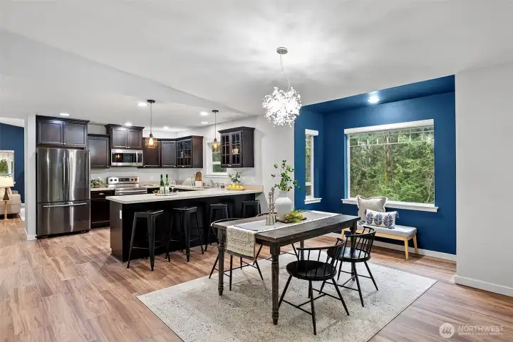Enjoy comfort and convenience in this single-story home tucked into the heart of Manchester. This well maintained 3 bed 2 bath home offers a flexible layout with two living spaces and a bright kitchen featuring solid stone countertops, SS appliances, and a peninsula perfect for coffee mornings, casual meals, or entertaining. Brand new LVP flooring flows throughout, with fresh carpet in the second bedroom. The primary suite includes a spacious ensuite and walk-in closet. Set on a private .92-acre lot near the end of the road giving you room to breathe, garden, or just enjoy the quiet PNW vibes. Just minutes to Manchester State Park, Schools, Library, Waterfront and Shops!