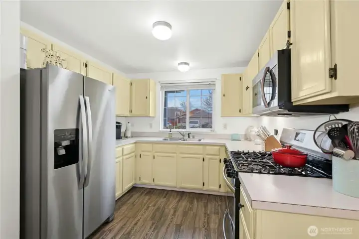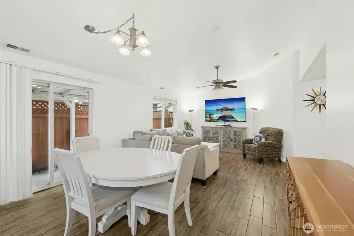 Charming rambler in the desirable Berry Farm community, absolutely perfect for a first-time homebuyer or anyone looking to downsize. This bright & cheerful one-story home offers an open floor plan with newer tile flooring throughout, a nicely sized kitchen with gas range & newer appliances & large, inviting rooms filled with natural light. The attached 2-car garage offers plenty of built-in storage. Enjoy easy outdoor living with a low-maintenance cement patio, fencing & access on both sides of the home. Recent updates include all new interior paint & moulding, exterior pressure washing & a newer roof (2020). A truly perfect location just five minutes from I-5. Classified as a condo but lives like a single-family home with no shared walls.