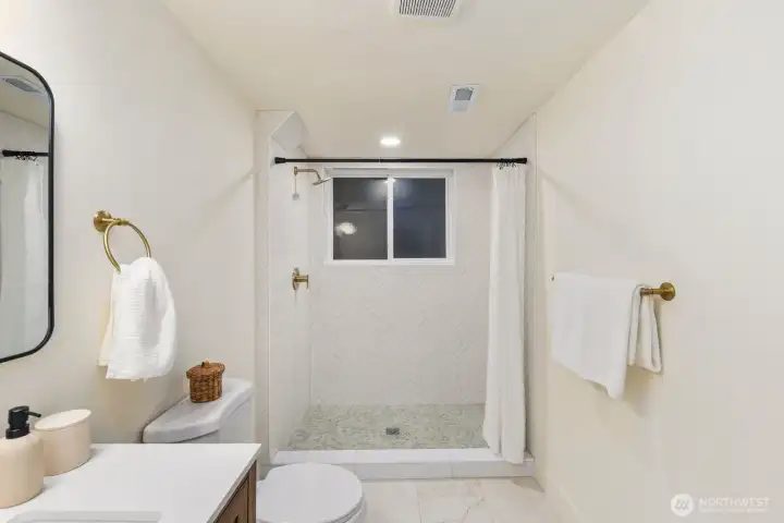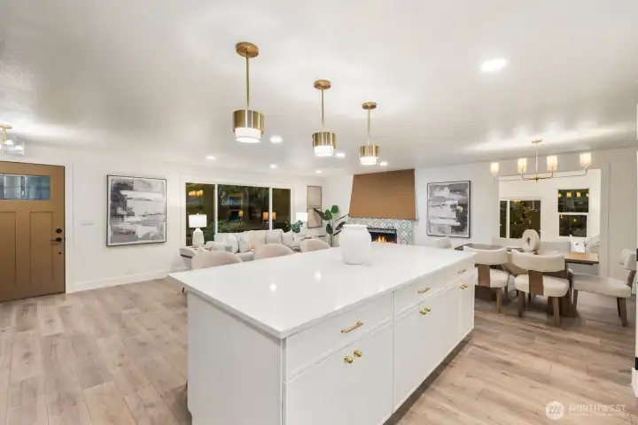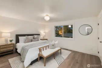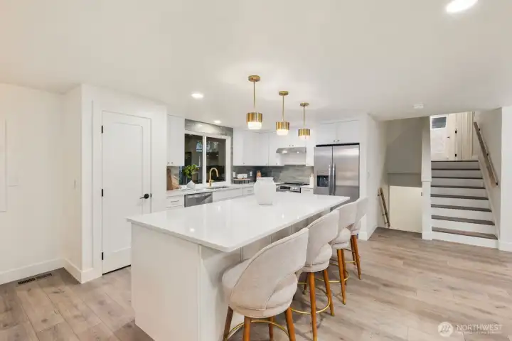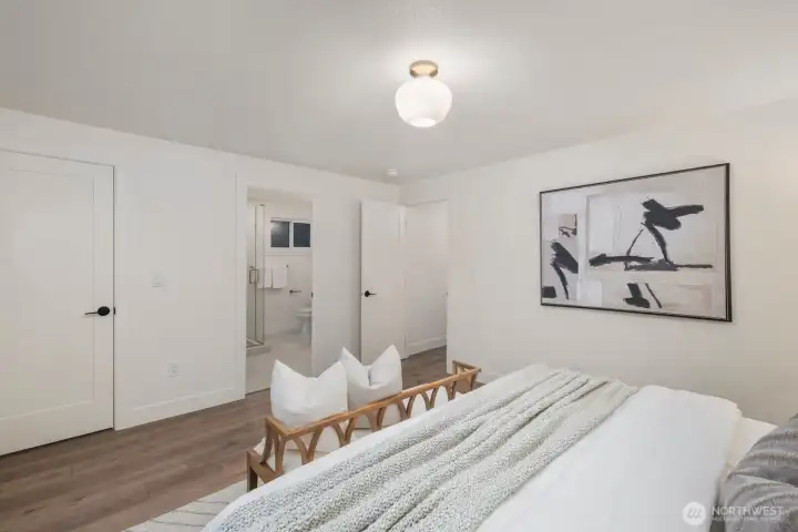 One of a kind by Aced Homes in Kirkland! Step through the front door into an instantly welcoming, open flow that greets you with abundant natural light and seamless energy throughout the home. Revel in morning sunshine in the master bedroom facing east, perfect for waking up refreshed. This gem sits on a peaceful dead-end cul-de-sac with a private backyard and generous 8,482 sq ft lot. Completely renovated with a new roof, gutters, plumbing, electrical, insulation, furnace, water heater, and more. Every surface shines with custom designer finishes by AJX Design. Open-concept chef's kitchen fully remodeled with slim shaker cabinets, quartz island bar overhang countertops, and brand new upgraded appliances—ideal for entertaining or cozy evenings. High-end LVP flooring and custom tile throughout, including in the three fully remodeled luxury bathrooms crafted for spa-like relaxation. Dual laundry upstairs and downstairs. Brand new hydro-seeded yard with updated landscaping, new concrete driveway and walkway, plus new garage doors on the two-car garage. Minutes to downtown Kirkland, parks, and top-rated schools. Easy access to I-405.