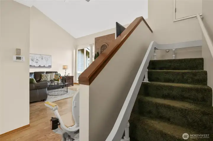 Enjoy easy living in this beautifully maintained 2-bedroom, 1.75-bath, 2-story condo in Ellensburg’s desirable Parkland community. Soaring ceilings and large windows flanking the fireplace make for one of the most desirable units. The home features tasteful updates, including a 2020 kitchen remodel. Newer appliances, durable laminate hardwood floors, and solid surface/corian countertops are a bonus. The furnace has been updated, and a heat pump added for A/C. The siding and roof were recently replaced by the HOA. A stair lift to the second level was installed last year (it can be removed if not needed.) A private enclosed deck, front patio, and attached garage add convenience and outdoor space, while the beautifully landscaped grounds with a creek create a peaceful setting. The community clubhouse, walking paths, and convenient location make Parkland a truly special place to call home.