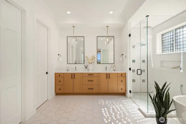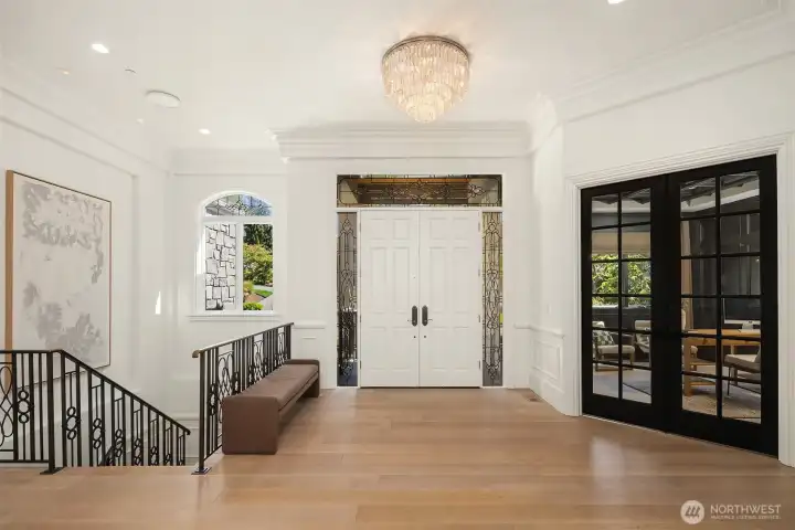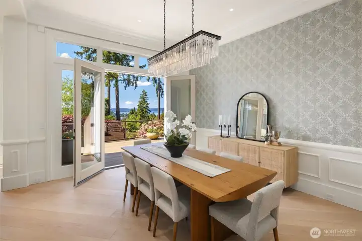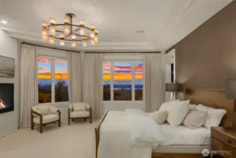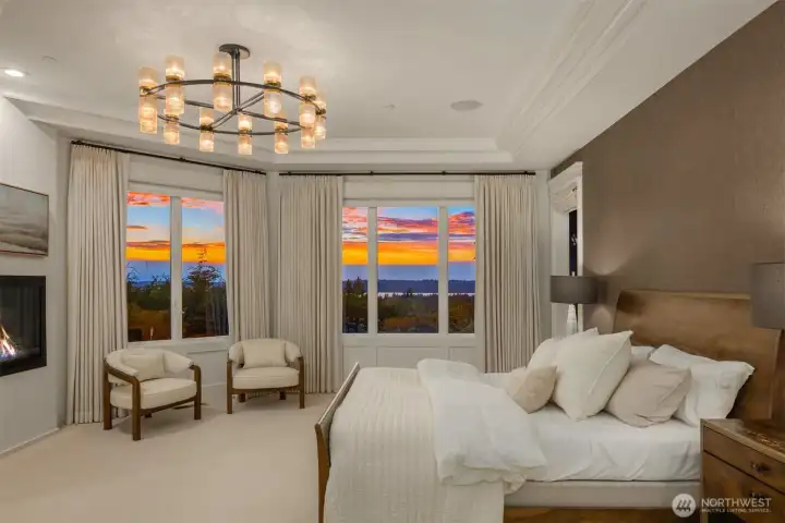 Experience breathtaking sunsets and sweeping vistas from this stunning Clyde Hill luxury home. Enjoy panoramic views of mountains, lake, and skyline that invigorate your days in this beautifully renovated daylight rambler. A 2022 renovation transformed this residence into a move-in ready home. The main floor is an open layout connecting bright, spacious living areas. The gourmet kitchen is a masterpiece of design and function. The family room provides spectacular views. The primary suite includes a fireplace, spa-inspired bath and a Nordstrom-worthy walk-in closet. Downstairs, three ensuite beds, a large theater with custom seating, a rec room with wet bar, a wine cellar and a second laundry room. The highlight: a full generational living suite/ADU featuring its own kitchen and private single-car garage. Relish two levels of outdoor entertaining spaces overlooking mature landscaping, a charming fountain, and a perfectly sized backyard. This is the pinnacle of Clyde Hill living just minutes from Bellevue, Seattle, parks and more.