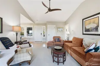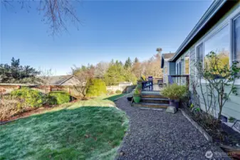 This delightful single-story home in the beautiful Cape George community is located on a quiet cul de sac and offers the perfect blend of charm, character and comfort. The welcoming covered front porch leads into the light-filled living room with propane fireplace. The fully remodeled kitchen features custom cabinets, huge pantry, stainless appliances, large picture window, and a versatile center island. The primary suite includes a large bedroom, two closets, and an updated primary bath. Two additional bedrooms and a full bath provide design flexibility. The spacious west-facing back deck is perfect for entertaining or lounging. The peaceful pet-friendly back yard is fully fenced. Lovely landscaping surrounds the home, with plenty of room for gardening. Just steps from a short trail to the waterfront neighborhood park. Extensive community amenities include marina, boat launch, kayak/canoe storage, clubhouse, indoor pool, waterfront gym, pickleball court, picnic pavilion, playground and more. Come join this fun and friendly neighborhood and enjoy all Cape George has to offer.