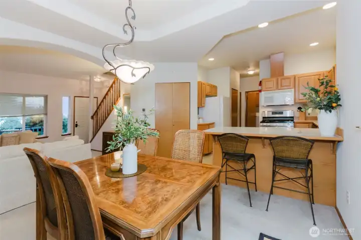Welcome home to peaceful water views and everyday comfort at the end of a quiet cul-de-sac, just minutes from Brownsville Marina. This thoughtfully designed 1,500 sq ft home offers 3 bedrooms and 2.5 baths, perched on a gentle hill that captures beautiful light and a calming outlook toward the water. The open floorplan flows effortlessly, featuring well-lit living spaces, a formal living room and dining room, and an inviting kitchen with a peninsula with seating, generous pantry, and excellent connection to the main living areas—perfect for both daily living and entertaining. A spacious laundry room and convenient half bath complete the main level. Upstairs, the primary suite is a true retreat with water views, a full en-suite bath, walk-in closet, and a charming sitting area—ideal for reading, relaxing, or starting your day with coffee and a view. Two additional bedrooms offer flexibility for guests, work-from-home space, or hobbies. Outdoor living shines here. The backyard features a large deck with room to garden, grill, or gather with friends, while the covered front patio offers the perfect spot for a bench to take in the water view and quiet surroundings. Close to schools, shopping, and local businesses, this home blends tranquility with convenience—an ideal place to settle in and enjoy the best of Kitsap living.