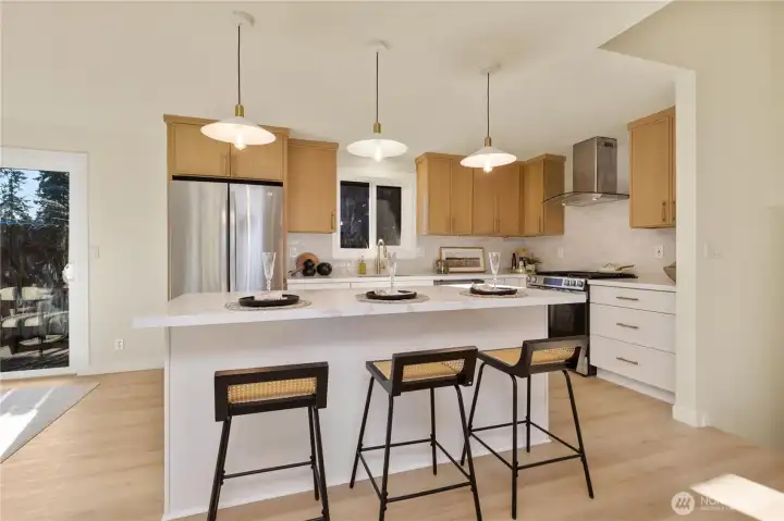 Welcome home to this thoughtfully updated tri-level residence in the heart of Meadowdale. Inside, the main living area showcases a spacious open-concept layout, framed by expansive windows & natural light. An upgraded kitchen offers fresh appliances, gas cooktop, SMART wiring & designer finishes throughout. The primary suite acts as a peaceful retreat, complete w/ a spa-inspired en suite bath. Downstairs, enjoy a spacious secondary living area ideal for media or recreation, along w/ a flex room perfect as an accessible fourth bed or home office. Set on a large corner lot along a quiet street, the outdoor spaces are what truly sets this home apart. The fully fenced backyard offers exceptional privacy featuring mature landscaping, covered gazebo, outdoor fire-pit, patio space, & storage—ideal for year-round enjoyment. Situated within Edmonds School District & only a short walk to Meadowdale HS & park. Located only minutes from Alderwood shopping/dining & freeway access, this home offers the perfect blend of privacy, comfort, & convenience. Meticulously maintained & pre-inspected.