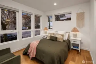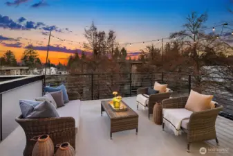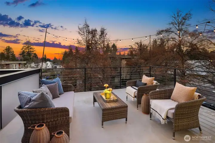 A rare Seattle find, this Medici Architects–designed Maple Leaf home lives far larger than expected. A bright, south-facing end unit, it’s drenched in natural light and designed for effortless entertaining. The open floor plan is anchored by a chef’s kitchen with quartz counters, gas range, stainless appliances, and a true entertainer’s island. A chic powder room off the main living area adds a level of ease and polish rarely found in homes like this. The entry-level second bedroom offers ideal guest or office flexibility, while upstairs the primary suite feels like a quiet retreat, complete with a luxurious bathroom and custom Elfa walk-in closet. Both bedrooms are ensuite. Hardwood floors, custom blinds, on-demand tankless hot water, and efficient ductless heating and A/C elevate everyday living. An oversized one-car garage easily doubles as a gym or flex space, and the **rooftop deck, just one level from the living space**creates seamless indoor-outdoor flow. Enjoy excellent proximity to Maple Leaf shops, I-5, Green Lake, light rail, Maple Leaf Park, dining, and transit. Big living. Sun-filled. Truly rare.
