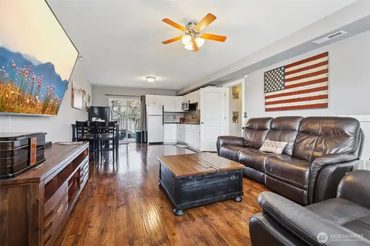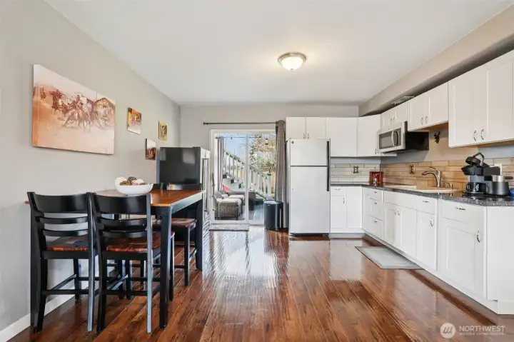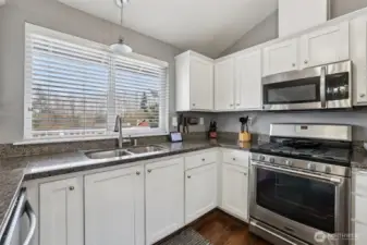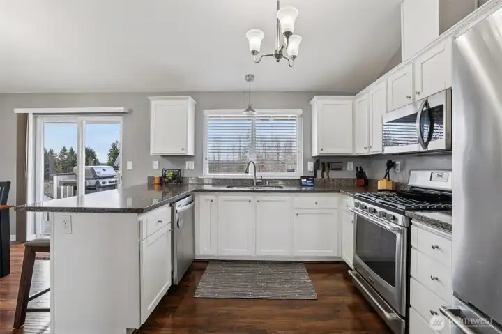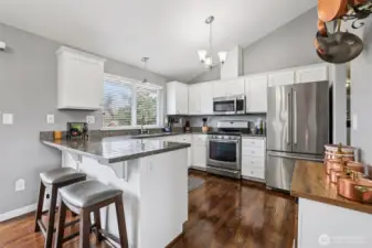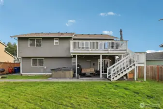 Welcome home to your well-maintained 4-bed, 3-bath home tucked away in a quiet neighborhood in Puyallup. Designed for flexible living, this home features two kitchens, making it ideal for multi-generational living or rental income potential. The updated interior includes vaulted ceilings, granite countertops, stainless steel appliances, and laminate hardwood throughout main areas. The primary bedroom includes an en-suite bath, with the convenience of a shower on every level. Stay cozy by the wood-burning fireplace or step outside to a fully fenced backyard where pets can roam and sunsets are best enjoyed from the hot tub. Recent exterior paint, a newly installed A/C for summer comfort, and wired with a newer generator that conveys.