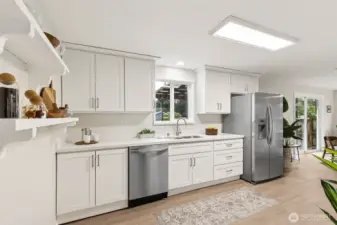 Come see this beautiful updated rambler offering 3 bedrooms, 1bath, spacious living room w/gas fireplace & light filled windows. Nicely updated kitchen featuring white cabinets, quartz countertops, stainless appliances & convenient dining area for easy conversation. Laundry area& one car garage. New paint & flooring throughout, Gas heat & doublepane windows make this home energy efficient. Covered rear deck for year round entertaining. Located in the desirable Manhattan neighborhood w/ Lot "A" beach rights at the Normandy Park Cove. Convenient to Biking/walking trails, Angle Lake light rail, freeways, shopping & more.