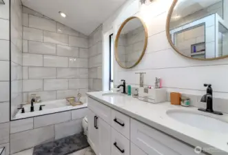 Ideally located in the heart of UNIVERSITY PLACE and served by some of the area’s most sought-after UP schools, this 4-bedroom + huge bonus room, 3-bath home is tucked away on a quiet cul-de-sac with exceptional convenience. The flexible layout features a primary suite with ensuite bath, an additional primary-style bedroom with its own ensuite, and a huge bonus/game room with direct access to the backyard and brand-new oversized deck—perfect for entertaining. Open yet defined living with two living spaces, dining area, and an eat-in kitchen with SS appliances and granite countertops. Enjoy high-quality, durable laminate flooring throughout, designed to withstand everyday living, generous bedroom sizes, and thoughtful flow. The large backyard offers garden space and a finished putting green. Oversized two-car garage. Close to shopping, dining, and freeway access. Elevated setting with partial Puget Sound VIEWS and sunsets. A fantastic opportunity in a prime UP location! A must-see in-person!