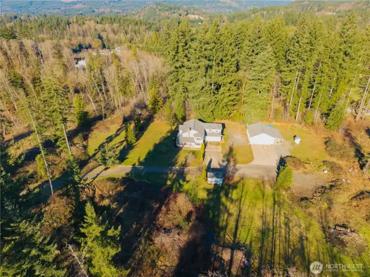 Beautifully situated on 5.28 private acres, this 4-bedroom, 3-bath home offers the perfect blend of space and serenity. The flat, usable land is dotted with mature trees and provides a peaceful, private setting. Enjoy outdoor living from the covered wrap-around porch, ideal for relaxing and taking in the surroundings. Inside, the living room features a cozy wood-burning stove, while built-ins add both charm and functionality. A bonus/flex space upstairs is perfect for a craft room, home office, or additional living area. The property also includes a 2-bay shop and the convenience of two hot water heaters. A rare opportunity for acreage, privacy, and versatility.