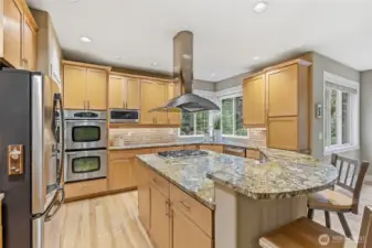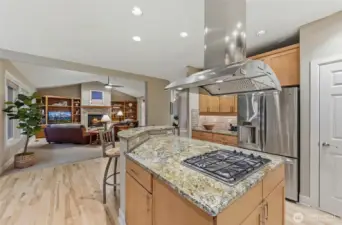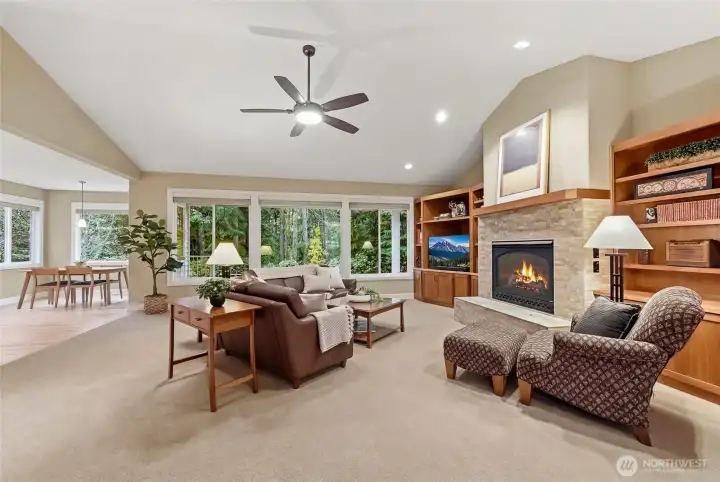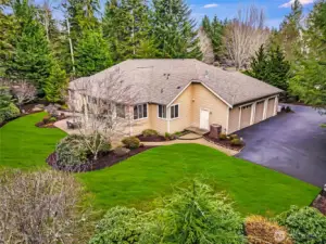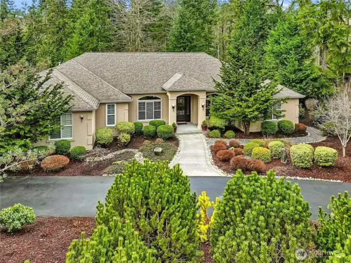 Behind the gate & circular drive, you'll find this stately, classy one-owner ONE-level home. True wood floors, pristine finishes & lush EZ Care landscaping accent the surroundings. Shy 3-acre parcel w/room for RVs, sports/pickleball court, gardening & of course lounging or entertaining. Owners have also carved their own private nature trails. Garden shed. Covered outdoor area w/dedicated gas hookup for your grill makes dining al fresco a breeze. Inside you'll find a den w/beautiful, restful finishes, an open greatroom w/an inviting, impressive fireplace & a dining room tucked out of high-traffic areas but not out of sight!; it's a pristine, planned space. Generous kitchen featuring newer hard surfaces, ss appliances, lavish pantry & counter space ready & able to handle any large gathering. Big kitchen eat-in island is sure to become a favorite hub. Laundry room with additional cabinets & closets, a sink, & space for projects. Primary suite fits larger furniture. The bathing area has dble sinks, a soothing soaking tub, a separate shower & tons of cabinets, all with an arboretum-like view. There are also 2 good sized auxilary bdrms. 3 car gar is over 900 asf (equivalent to 4 car); room for extra parking,toys & storage, extra deep too. Whole house auto generator; no power outages for you; newer furnace & hotwater tank. The Ridge neighborhood features large lots, acres of set-aside protected area, tranquility, walkability & great access to life's necessities. You'll love it!