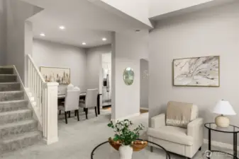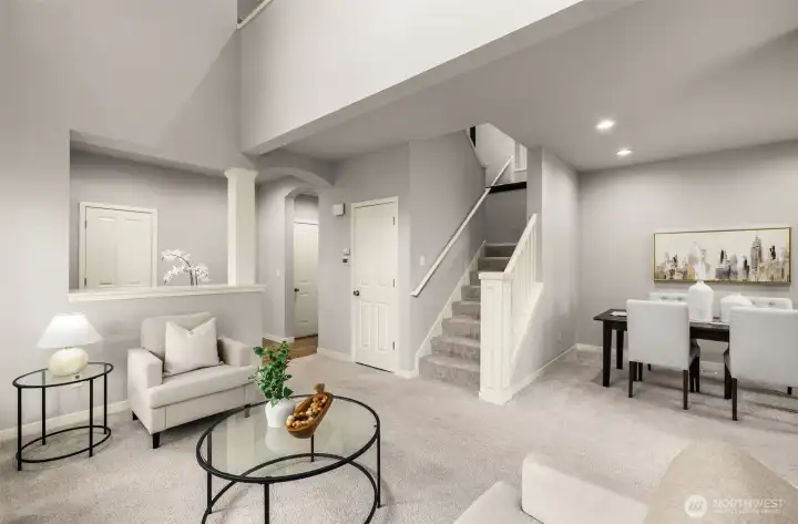 Beautifully updated Murray Franklyn home in the coveted Vintage community, located within the highly sought-after Lake Washington School District. This home showcases soaring vaulted ceilings and exceptional natural light throughout. The inviting living room is enhanced by expansive windows, while the family room features a gas fireplace and custom media niche. The gourmet kitchen impresses with recent upgrades- quartz countertops, designer tile backsplash, stainless steel appliances, including a gas range—perfectly suited for both everyday living and entertaining. Retreat to the spacious primary suite offering an updated five-piece bath and an oversized walk-in closet. Additional interior enhancements include fresh paint and new carpet. Recent upgrades include a newer HVAC system, exterior paint, and roof, offering modern comfort and peace of mind. Enjoy a private, fully fenced patio designed for seamless indoor-outdoor entertaining. Two-car attached garage with abundant storage. HOA dues include front yard and exterior maintenance. Ideally situated near trails, YMCA, library, and everyday conveniences. Pre-inspected and move-in ready, this home delivers elevated townhome living with the comfort and presence of a single-family residence.