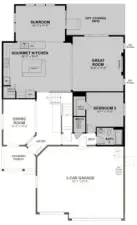 The main floor of the Seth plan features a large gourmet kitchen with an expansive center island that opens to an immense great room with fireplace. The home continues to impress with a sunroom leading you to a covered patio, a formal dining room, and a convenient main floor bedroom with adjacent full bath. Upstairs, you’ll find a loft, three additional secondary bedrooms, and a luxurious primary suite with His and Her's walk-in closets, a deluxe bath including a 6 ft soaking tub and separate tile shower. This home backs to protected green space and is on a quiet dead end street. If you are working with a licensed broker, please register your broker on your first visit to the community per our site reg policy.
