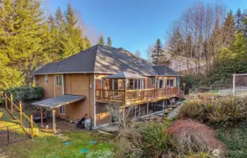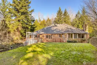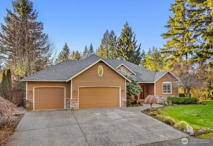 Welcome to your tranquil PNW Craftsman retreat set on 1.1 private acres. This home features a beautifully updated chef’s kitchen with quartz countertops and stainless steel appliances, perfect for everyday living and entertaining. Rich hardwood floors span the main level, including a primary suite on the main for easy, comfortable living. The expansive lower level is built for fun and flexibility with a home theater and seating, gaming area, bar, cozy fireplace, and popcorn machine—ideal for gatherings. Wet bar wired for oven/stove and with a separate entrance, it also offers potential for a MIL or guest suite. Step outside to enjoy the serene garden, fully fenced yard, hot tub, and outdoor firepit—your own private sanctuary. Bring your animals and your toys: RV parking with hookups, generator wiring, and a third-car garage set up perfectly for a shop. Minutes to all that downtown Snohomish has to offer and just five minutes to Snohomish Golf Course, this 3-bedroom, 2.5-bath home blends luxury, comfort, and space—peaceful living with convenience.