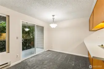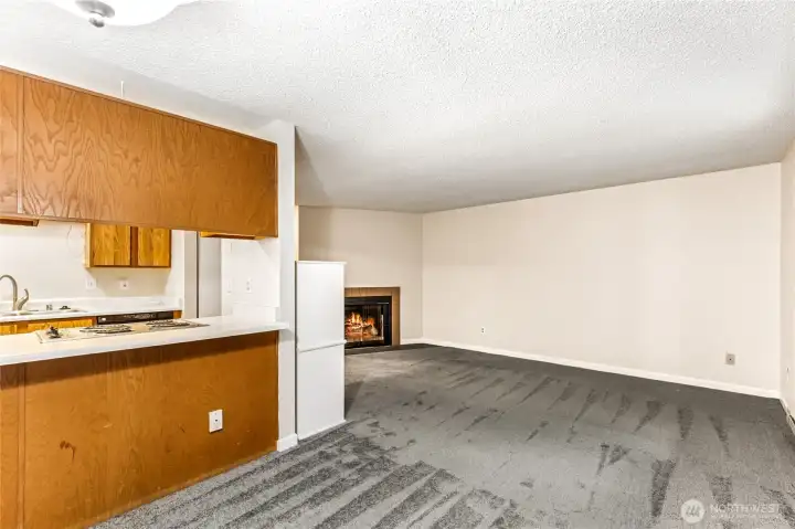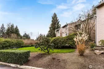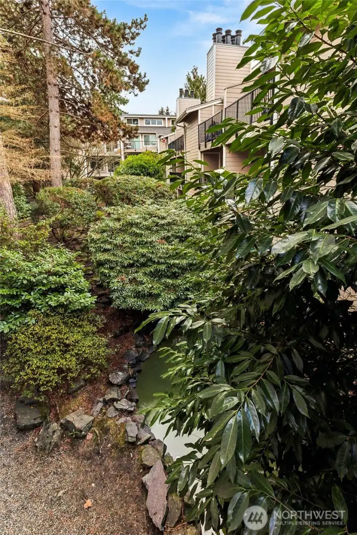 A wonderful opportunity to own in Ballinger Community; a well cared-for complex with new roof, cement siding, exterior paint, vinyl insulated windows, (lots of natural light), and paved parking lot. 2 bedrooms, 1.25 updated bath, newer laminate hardwood flooring, new carpet and interior paint. Inviting wood burning fireplace connects living room, dining, and kitchen into a very comfortable living area. Slider to private deck with large storage closet, over-looking water feature and bird-friendly environment. Generously sized bedrooms, primary has access to bath + separate vanity. Roomy laundry room with full-size washer/dryer (stay) and extra storage. Just minutes from shopping, I-5 access, restaurants, and public transportation, yet a quiet/private location. No rental cap. No new special assessment. Existing assessment for work completed will be paid by Seller at closing with acceptable offer. One reserved parking space + plenty of visitor parking too. Move-in ready!