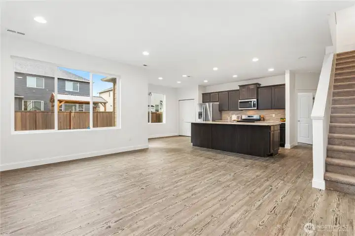 Beautifully maintained 2,597 SF home offering 5 bedrooms (or 4 plus a den/office) and an open, inviting layout. The bright kitchen, dining, and living areas flow together seamlessly, centered around a cozy gas fireplace. Enjoy brand new laminate flooring on the main level and plenty of natural light throughout. The spacious upper-level primary suite features a large soaking tub, walk-in closet, and room to unwind. Upstairs bonus room adds flexible space for play, work, or relaxation. Fully fenced backyard perfect for outdoor gatherings. Located in a wonderful neighborhood filled with parks and a great community feel!